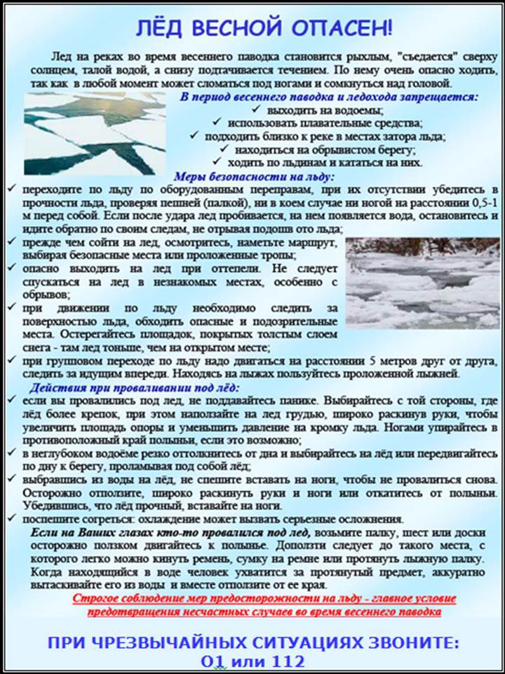 Уважаемые родители! В целях предупреждения происшествий, травматизма и гибели детей на водных объектах в весенний период предлагаем Вам познакомиться с памятками.