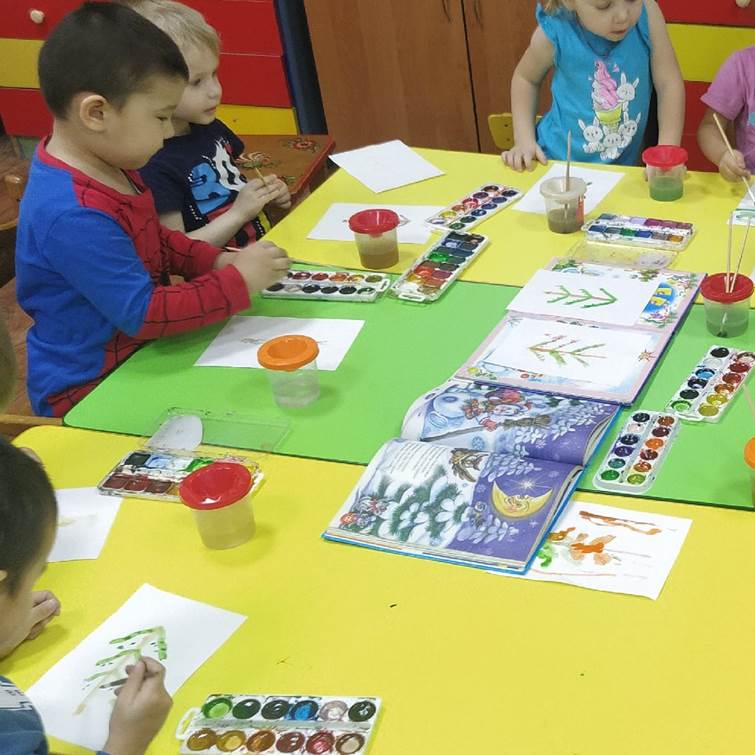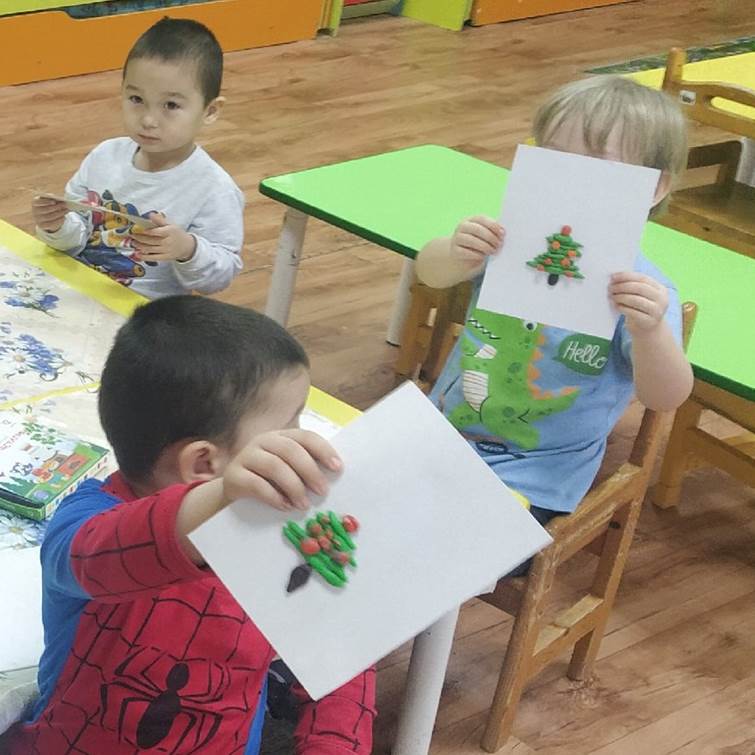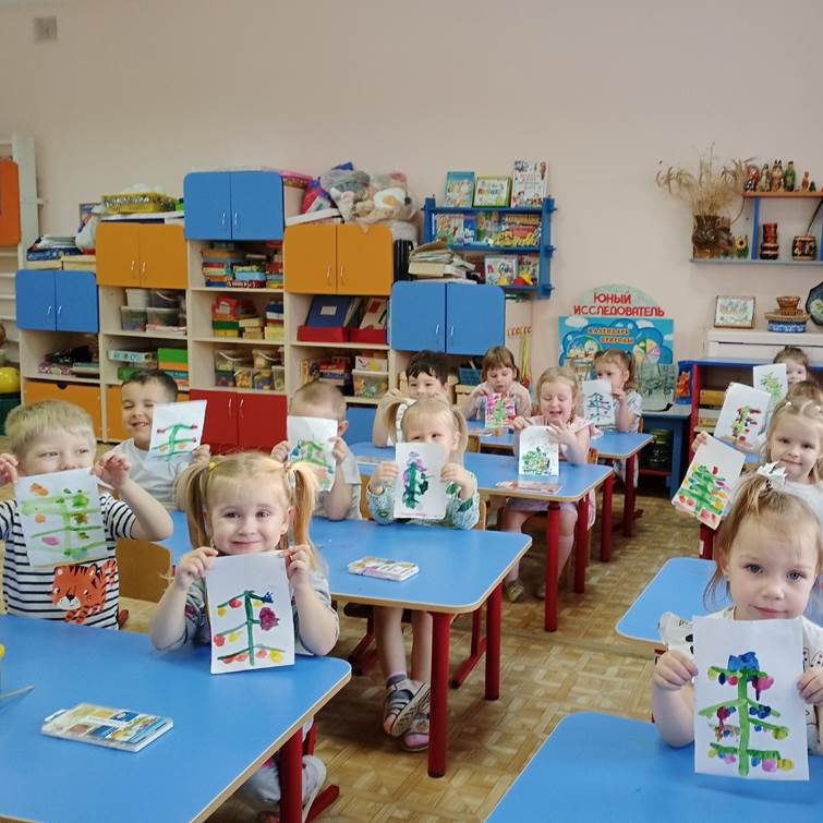 Разными техниками ребята сделали праздничными лесных красавиц - рисовали красками и карандашами, с помощью аппликации и да же пластилина.