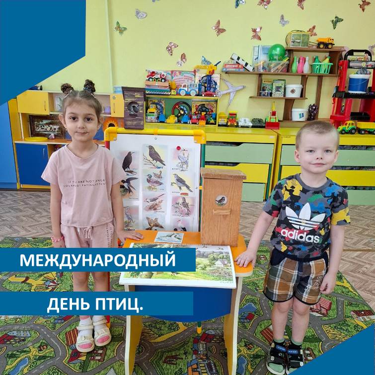 В ДОУ прошёл тематический день «Международный день птиц». Дети рассматривали изображения птиц, видео-презентации «Птицы наши друзья», отгадывали загадки, закрепили классификации птиц, пробовали узнать птиц по голосу. Слушая птиц, ребята узнали о том, что пение птиц успокаивает человека, улучшает настроение и сон, положительно влияет на общее состояние организма.