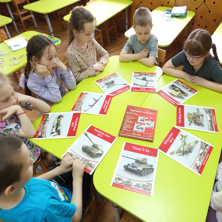 В преддверии великого праздника - Дня Победы, ребята познакомились с его историей, пионерами - героями, героями – членами своих семей и разной военной техникой.